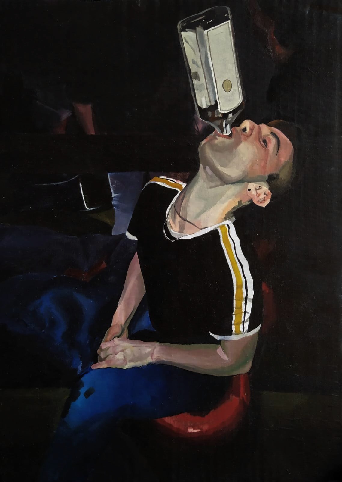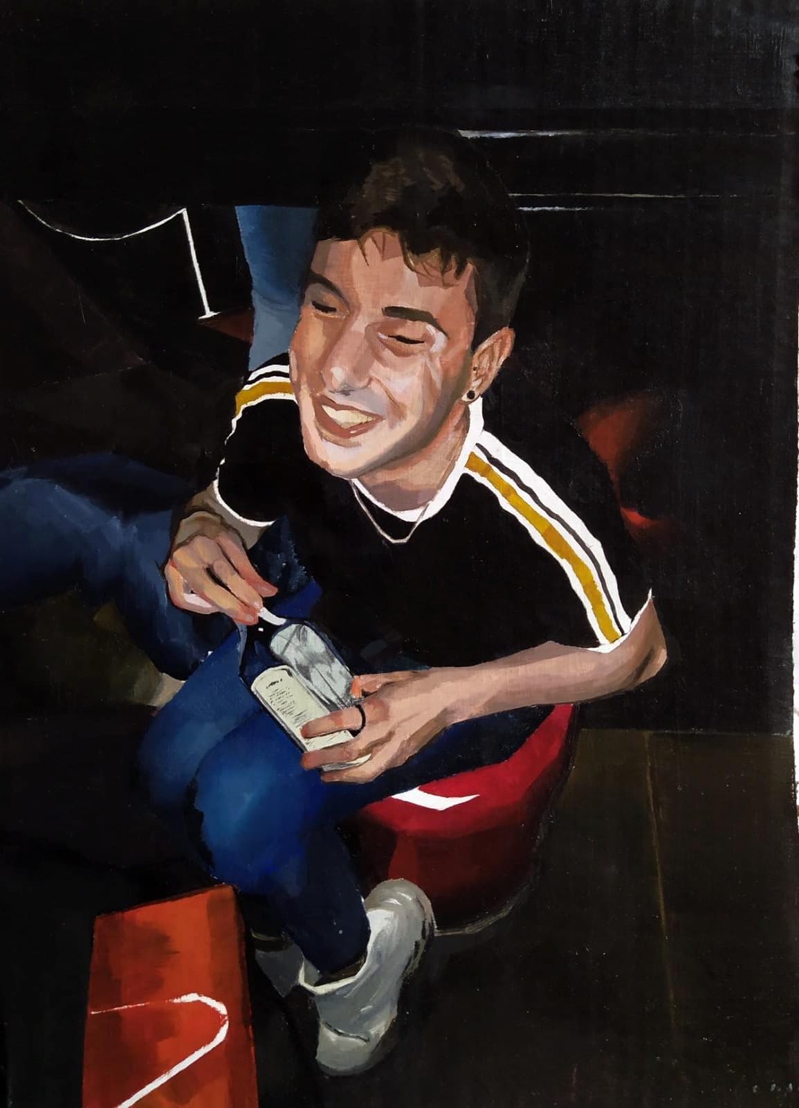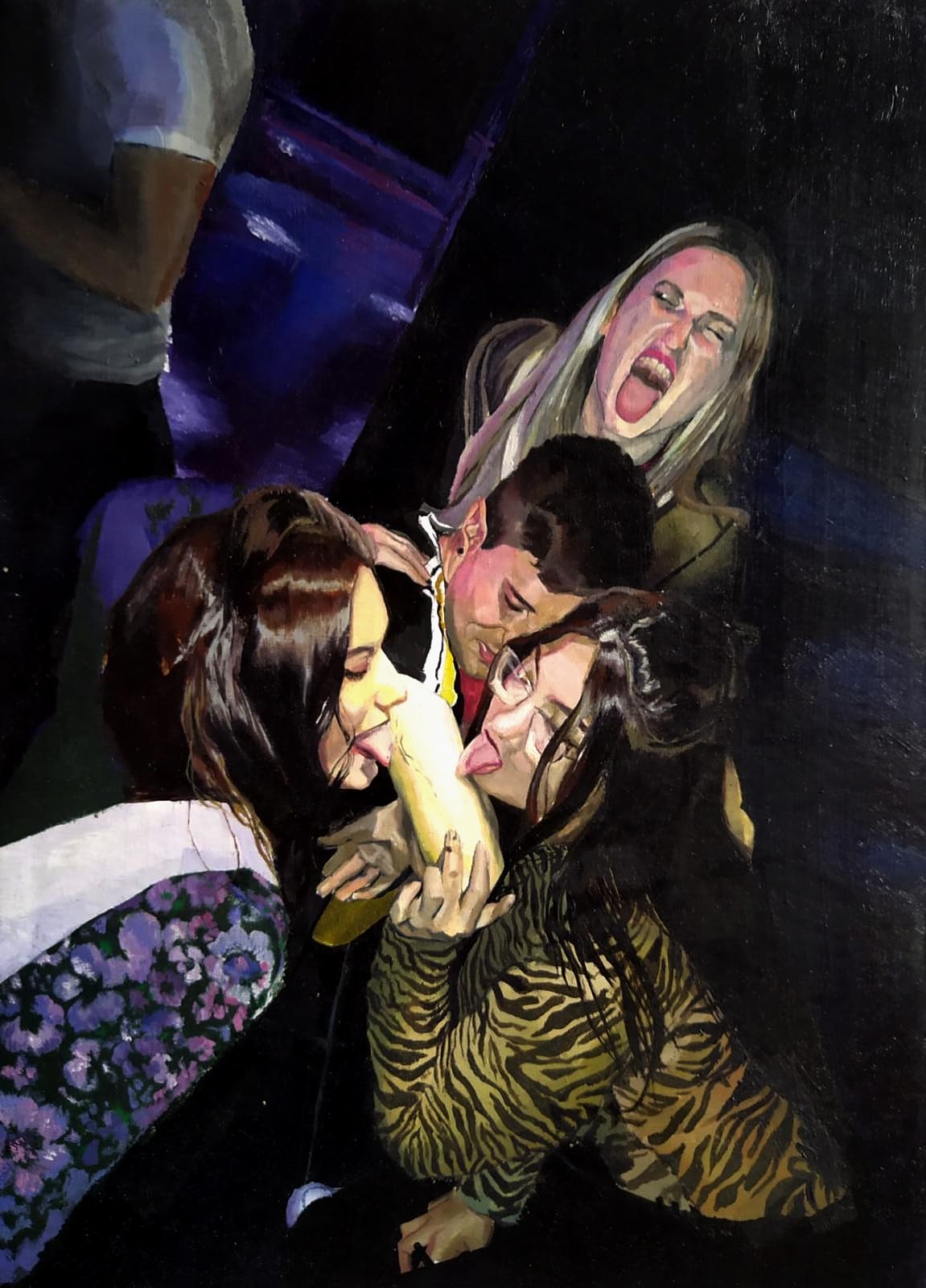La serie, que orbita alrededor del imaginario del dios Baco/Dionisio actualiza representaciones creadas por Caravaggio y Bouguerau con imágenes propias de mi imaginario, habitando lugares y momentos conocidos de la fiesta madrileña y establece un diálogo con imaginarios actuales reproducidos al óleo, acentuando las similitudes entre ambas.