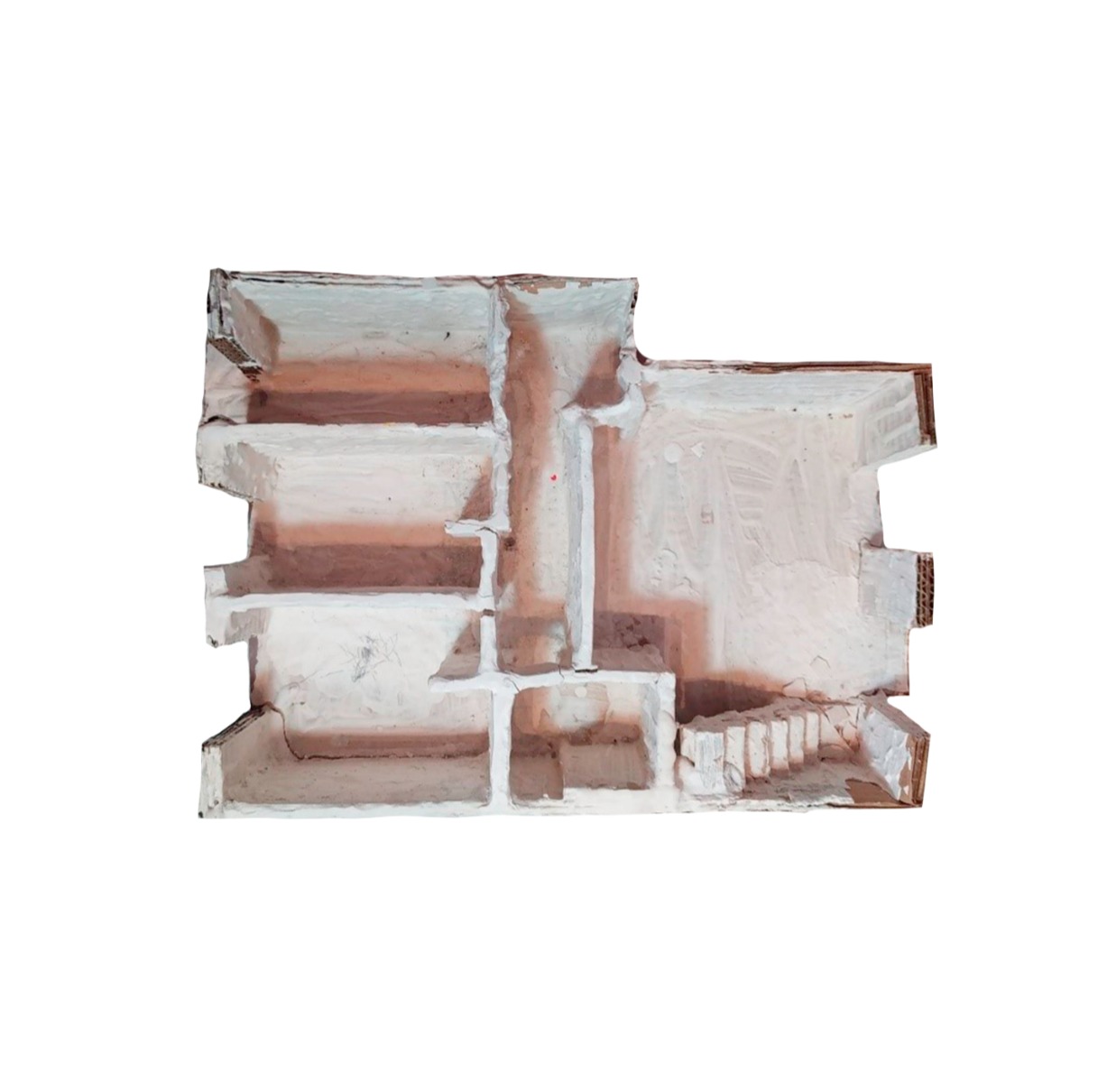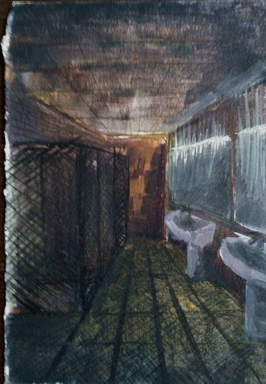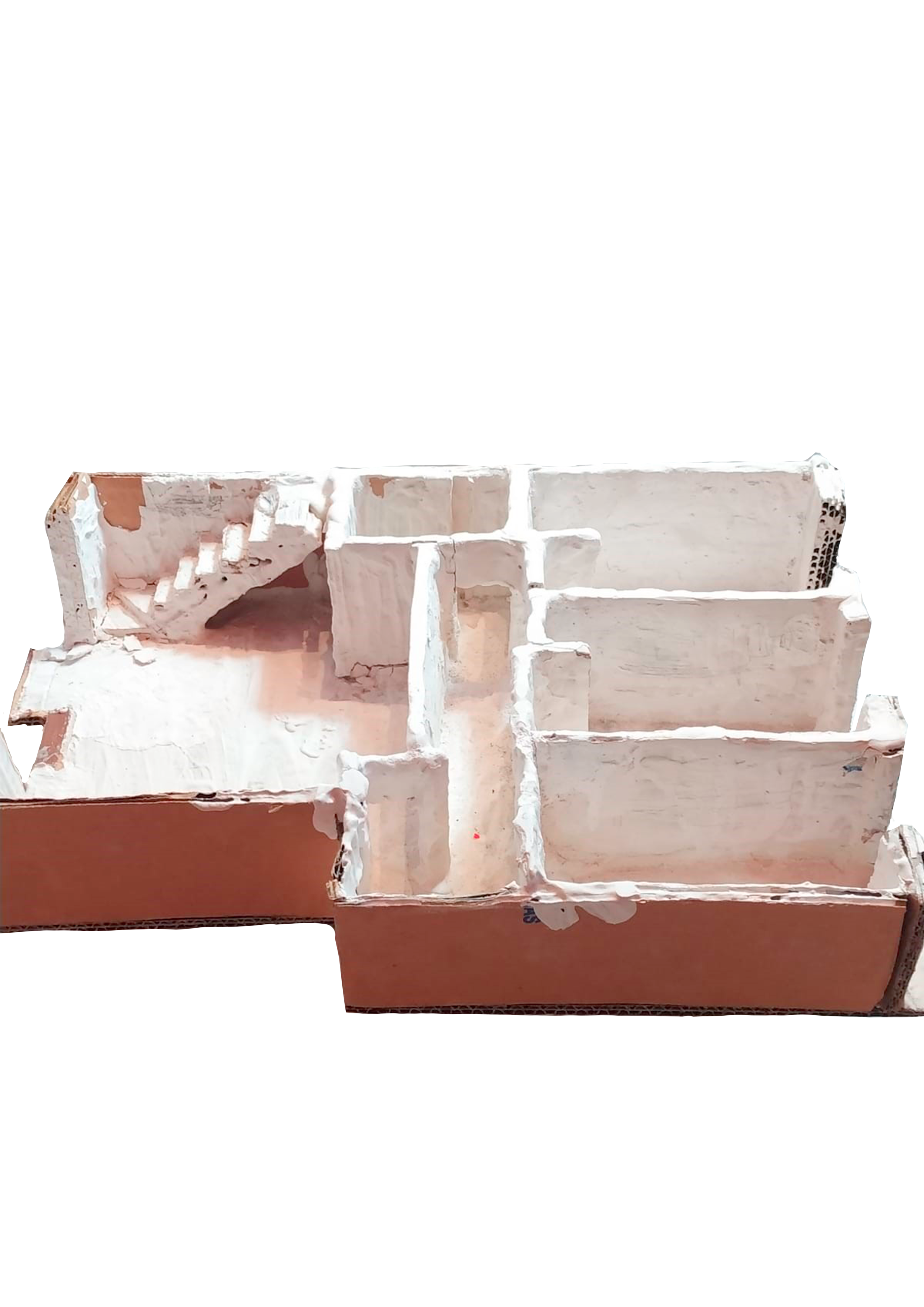 "Lo siniestro está en casa" es un díptico escultórico a modo de maquetas de hierro soldado y oxidado, con el que, al momento de confeccionarlo, pienso acerca de los espacios que habito como maquetas heterogéneas en las que no somos más que marionetas vertebradas por el poder y expuestas a jerarquías constructoras de agentes privilegiados y sujetos vulnerables.